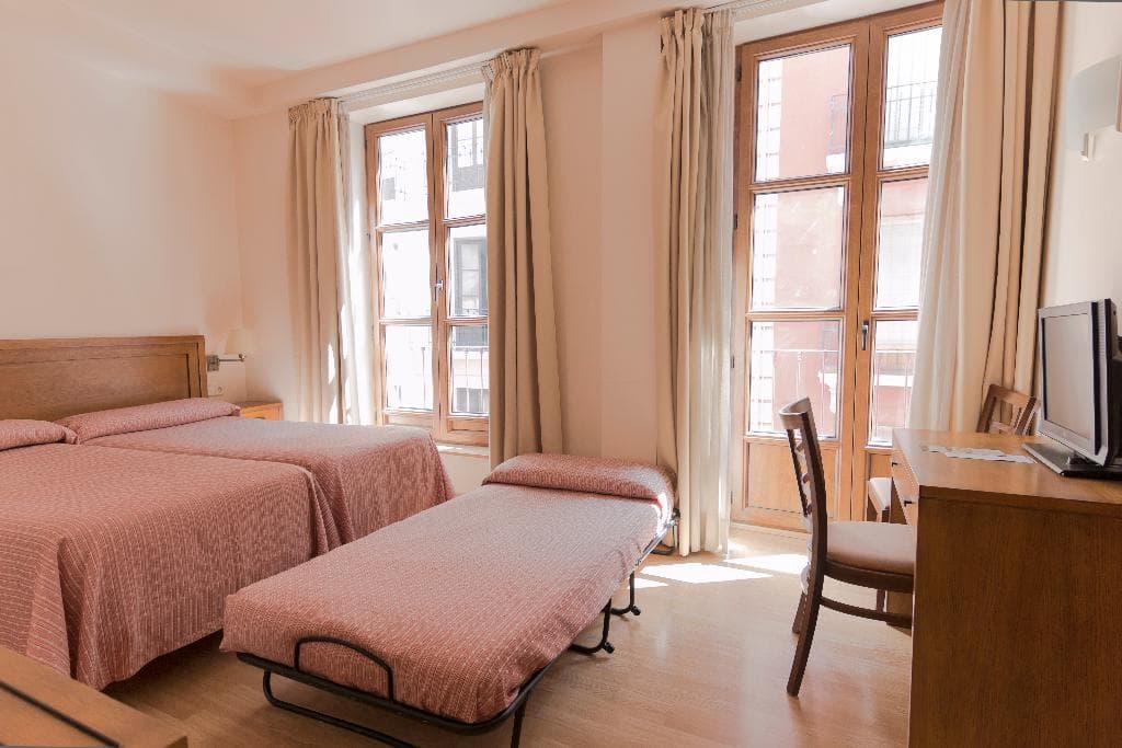 This hotel is located in the commercial and administrative centre of the city, just 200 m from the cathedral and the Royal Chapel. It enjoys a privileged location giving guests easy access to all corners of the city thanks to its proximity to the Gran Via de Colon. Granada Airport is 15 km away. Established in 2007, this city hotel provides a relaxed and comfortable environment. It comprises a total of 32 guestrooms including 4 single rooms, 25 double rooms and 3 triple rooms. All of them are air-conditioned and come with a private bathroom equipped with a hairdryer and toiletries. In-room amenities include a TV, a telephone and Internet access, thanks to which guests can stay connected and entertained. Visitors can enjoy some quiet social interaction in the hotel's TV lounge and 50 m from the establishment they will find the nearest dining option. Check in: 14:00 p. m. Check out: 12:00 p. m. Please note: 10 EUR per pet and day, maximum 10 kg. Breakfast is continental and can be enjoyed in a cafe next to the hotel located 150 meters away. The hours are from Monday to Friday from 07:00 to 13:00 and weekends and holidays from 08:00 to 13:00. Parking is near the hotel and the price is 13 EUR per night. How to get to our hotel: Take exit 128 Méndez Núñez. Go straight through Méndez Núñez. Follow the Constitucion avenue until a roundabout. Take the second street (is up hill) in the roundabout So, take this up hill street called Avenida del Hospicio, then take the first street (Avenida Capitan Moreno) to the right, at the end, right again through Calle Tinajillas. Follow this street and will cross Gran Via de Colon.